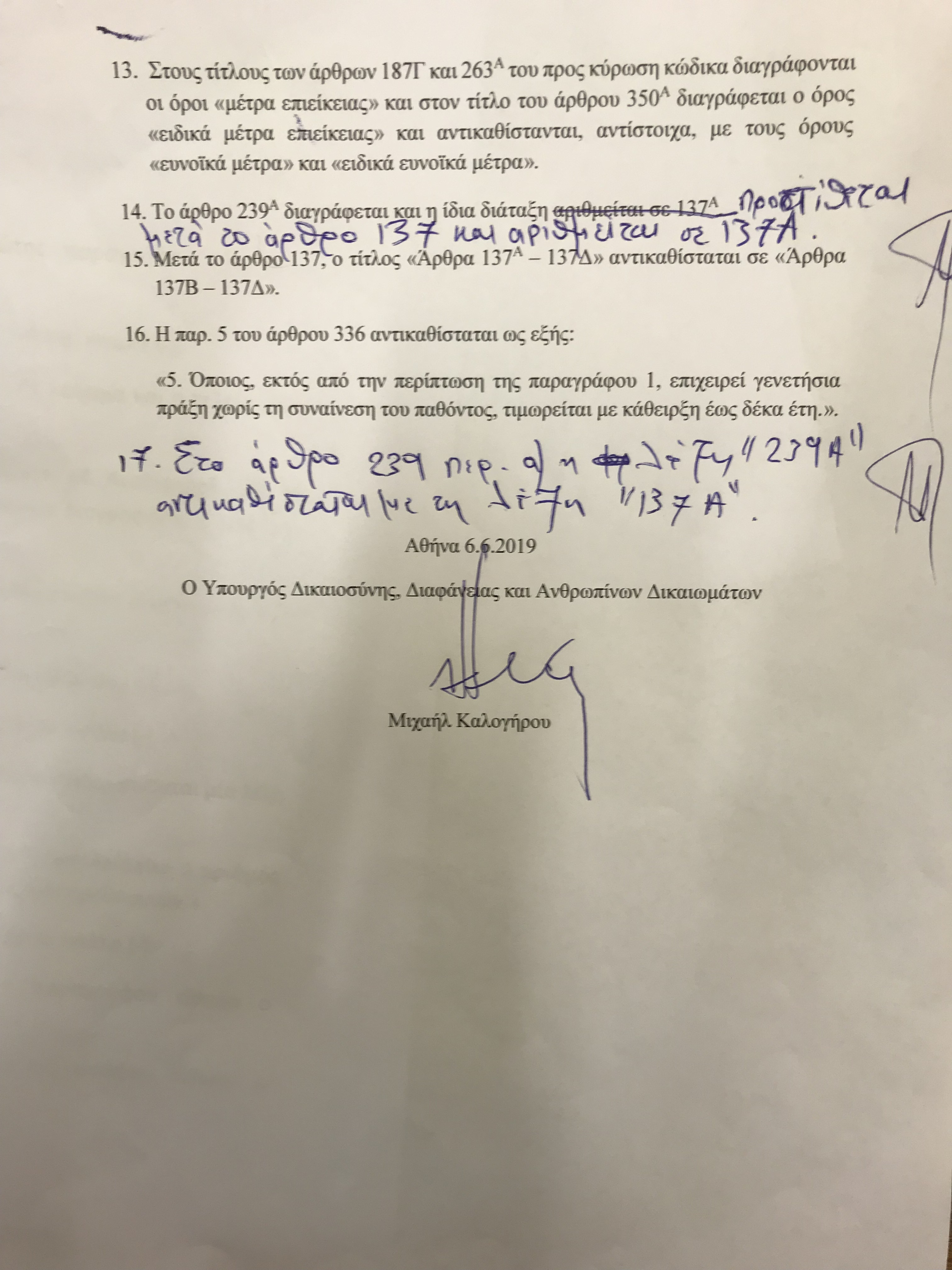 Το επίμαχο άρθρο παράγραφος 5 του άρθρου 336 αντικαθίσταται με την φράση ότι "όποιος επιχειρεί γενετήσια πράξη χωρίς την συναίνεση του παθόντος τιμωρείται με ποινή κάθειρξης έως 10 έτη".