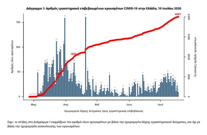 Εξ αυτών, τα 1.106 (27,6%) θεωρούνται σχετιζόμενα με ταξίδι από το εξωτερικό και 2.048 (51,1%) είναι σχετιζόμενα με ήδη γνωστό κρούσμα.