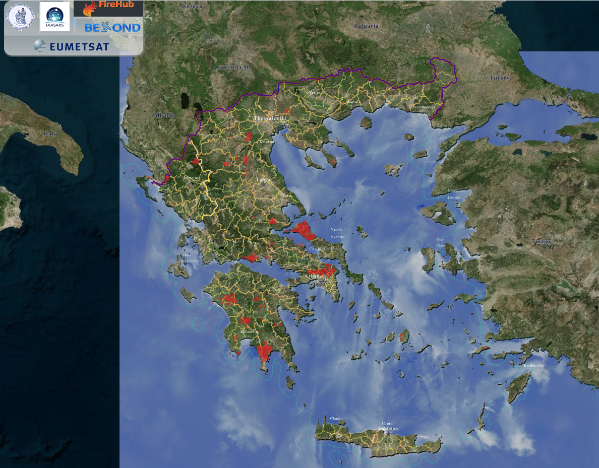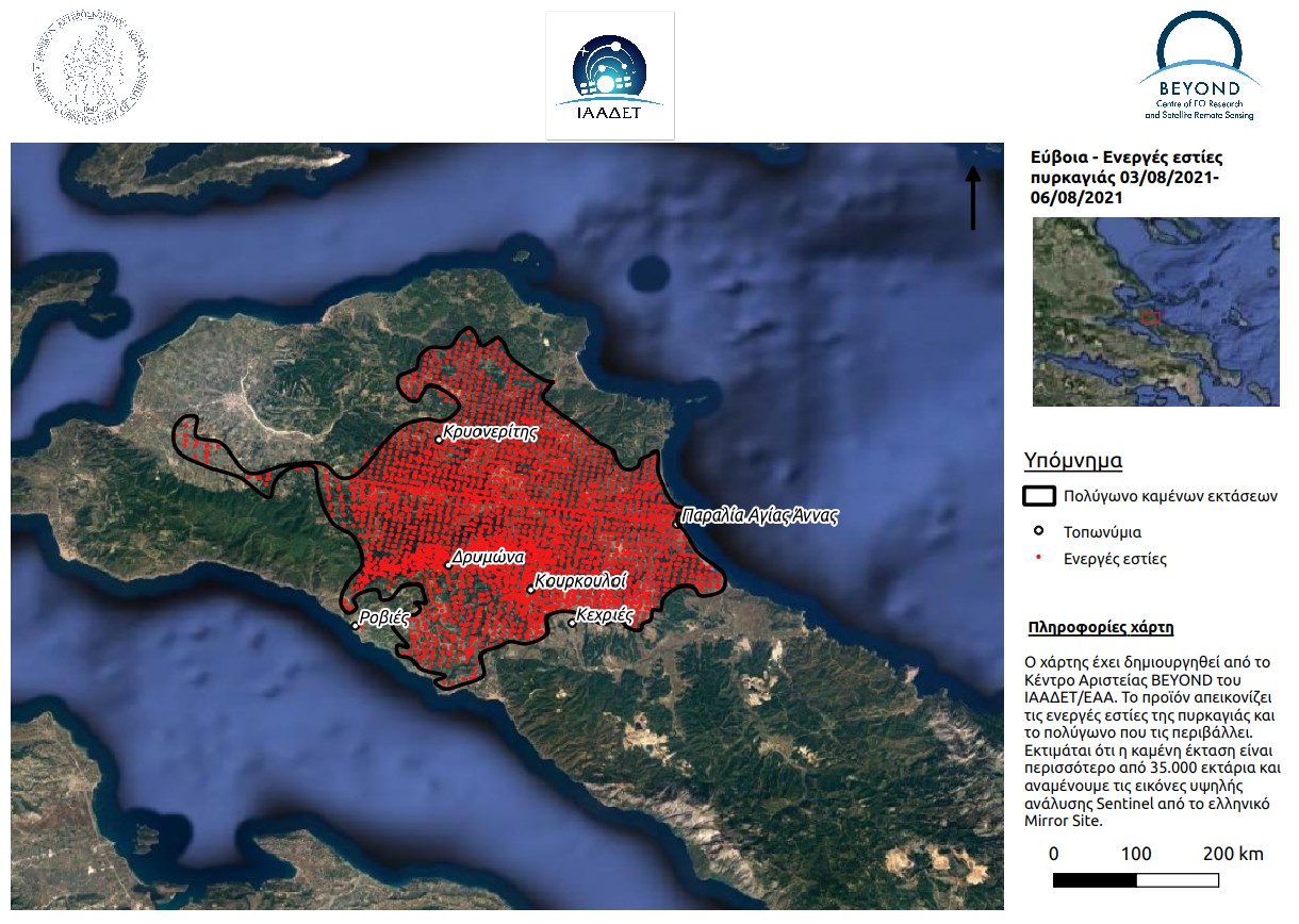Στην Ελλάδα, σύμφωνα με στοιχεία του Αστεροσκοπείου, η αρχική εκτίμηση για την καμένη έκταση στην Εύβοια υπολογίζεται στα 35.000 εκτάρια.