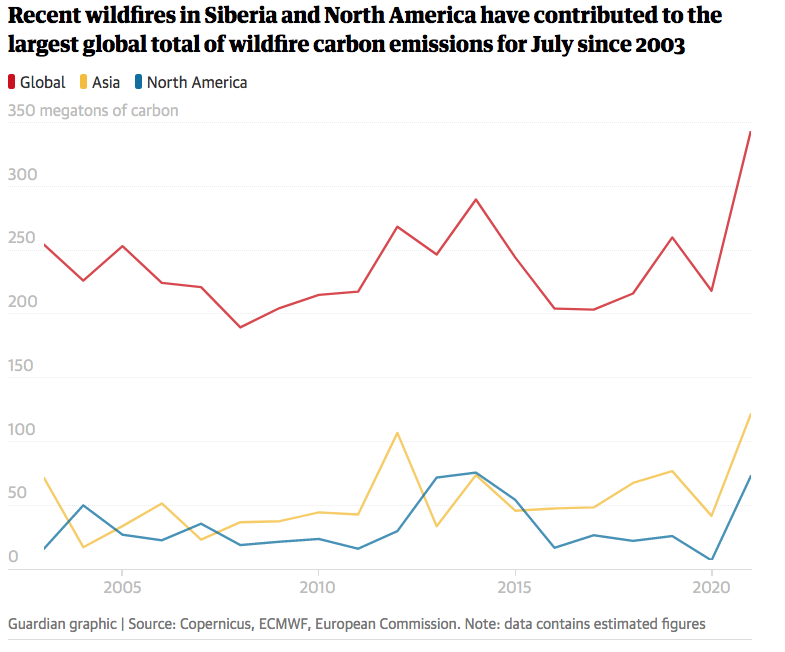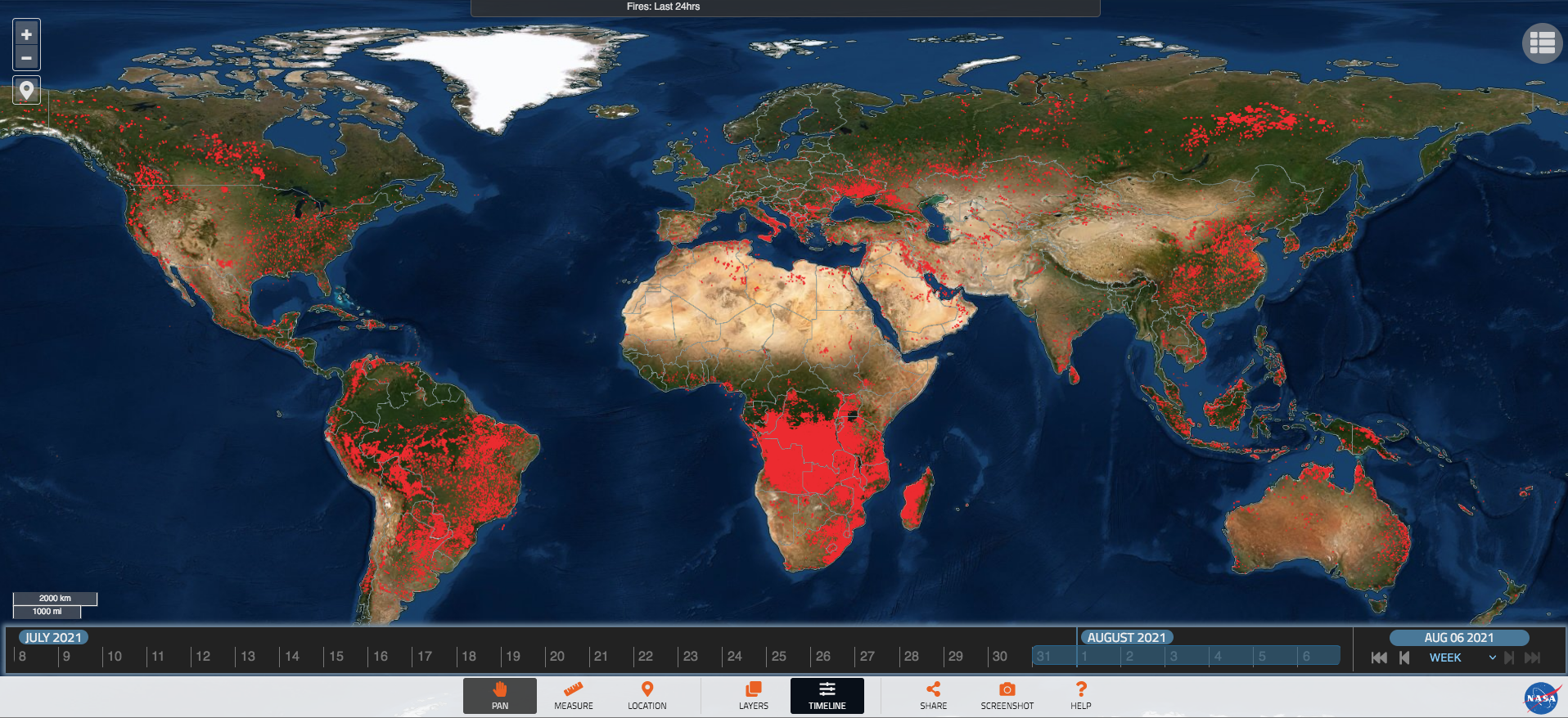 Εκατοντάδες μεγάλες πυρκαγιές συνεχίζουν να καταστρέφουν πολλά μέρη του πλανήτη μεταξύ των οποίων στις ΗΠΑ, στην Ευρώπη και τη Ρωσία. Μέχρι στιγμής ο αριθμός των πυρκαγιών το 2021 σε πολλές χώρες έχει ξεπεράσει τον μέσο όρο του προηγούμενου έτους.
