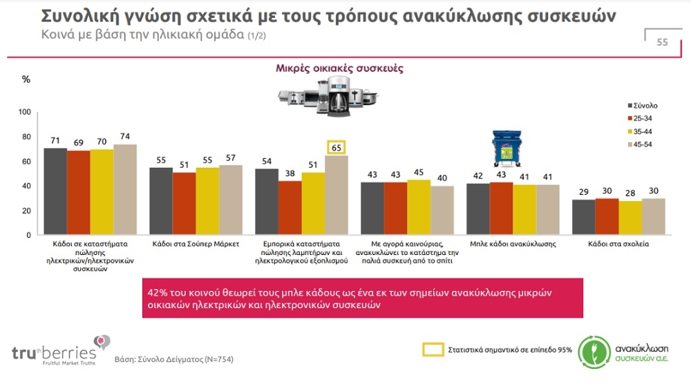 Τα τελευταία 3 χρόνια υπάρχει σημαντικός ρυθμός αύξησης (+32%) στους πολίτες που ανακυκλώνουν όλες τις συσκευές τους (από 30% σε 44%). Ταυτόχρονα, σημαντικός ο ρυθμός μείωσης σε αυτούς που δεν έχουν ανακυκλώσει καθόλου και τις έχουν πετάξει (από 16% σε 4%)