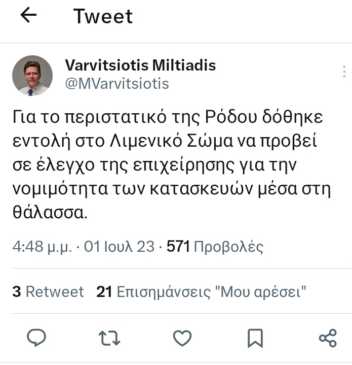 Το γεγονός προκάλεσε τόσο την παρέμβαση του υπουργού Εργασίας Άδωνι Γεωργιάδη, όσο και του υπουργού Ναυτιλίας Μιλτιάδη Βαρβιτσιώτη, ως προς το εάν οι θαλάσσιες κατασκευές έγιναν νόμιμα.