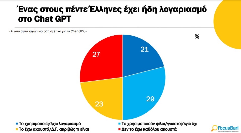 Η νέα έρευνα της Focus Bari με τίτλο "Οι Έλληνες & το Chat GPT" που διεξήχθηκε τον Ιούλιο του 2023 έδειξε ότι: