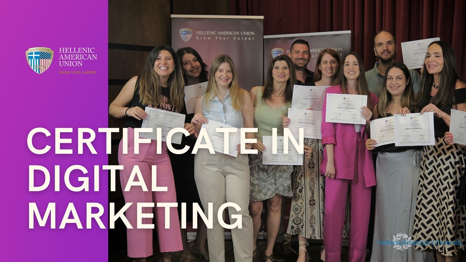 Νέος κύκλος του Certificate in Digital Marketing, βραβεβευμένο εκπαιδευτικό πρόγραμμα της Ελληνοαμερικανικής Ένωσης, 140 ωρών ξεκινά στις 22 Απριλίου. Σπουδάστε το Digital Marketing και διεκδικήστε άμεσα θέση εργασίας σε έναν από τους πιο περιζήτητους επαγγελματικούς κλάδους. To πρόγραμμα διεξάγεται Live Online και μπορείτε να το παρακολουθήσετε απ’όπου κι αν βρίσκεστε. Διαθέσιμο επίσης και σε On Demand βιντεοσκοπημένα μαθήματα για όσους δεν μπορούν να το παρακολουθήσουν ζωντανά online.