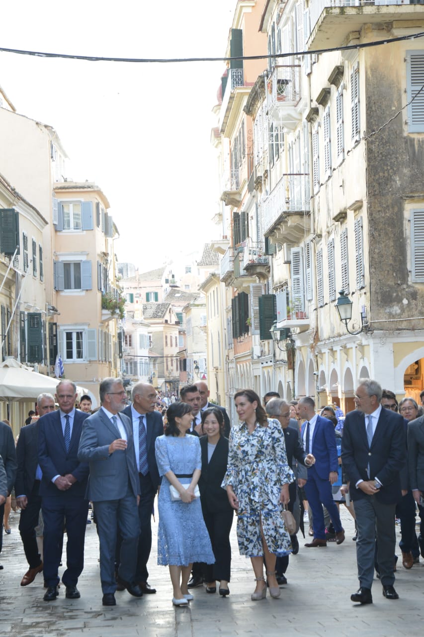 Μετά από ολιγόλεπτη ξενάγηση στους χώρους του Δημαρχείου, η Πριγκίπισσα Κάκο της Ιαπωνίας, η Υπουργός Τουρισμού Όλγα Κεφαλογιάννη και ο Δήμαρχος κος Στέφανος Πουλημένος περιηγήθηκαν στην Παλιά Πόλη της Κέρκυρας, περπάτησαν στον κεντρικό πεζόδρομο της Νικηφόρου Θεοτόκη, σταμάτησαν για λίγο στον προαύλιο χώρο του Αγίου Σπυρίδωνα και κατέληξαν στον πεζόδρομο του Λιστόν απ' όπου αναχώρησε η Ιαπωνική αποστολή.