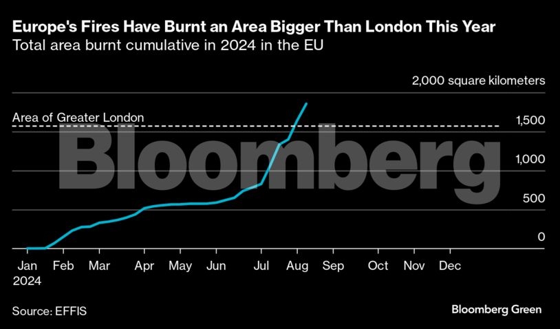 Η Ευρώπη δαπανά δεκάδες δισεκατομμύρια ευρώ ετησίως για την καταπολέμηση των πυρκαγιών, αλλά αυτό δεν εμπόδισε τις πυρκαγιές να ξεσπάσουν στην Ελλάδα και σε άλλα μέρη της ηπείρου αυτό το καλοκαίρι, τονίζει το πρακτορείο Bloomberg σε ανάλυσή του.