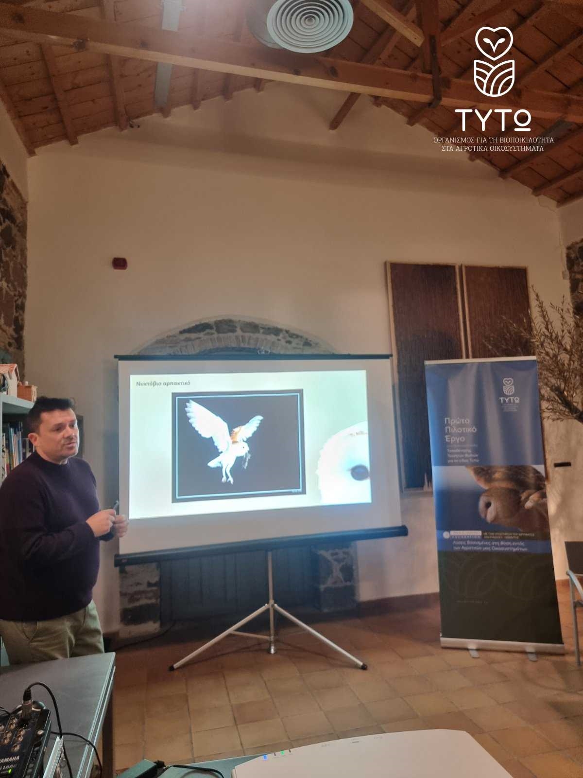 Για πρώτη φορά στη νησιωτική Ελλάδα, εφαρμόζεται σε τέτοια κλίμακα η μέθοδος τοποθέτησης τεχνητών φωλιών για το είδος Τυτώ, ένα νυκτόβιο αρπακτικό πτηνό που αποτελεί φυσικό σύμμαχο των αγροτών καθώς καταναλώνει ετησίως 2.000 – 4.000 τρωκτικά (ποντίκια).