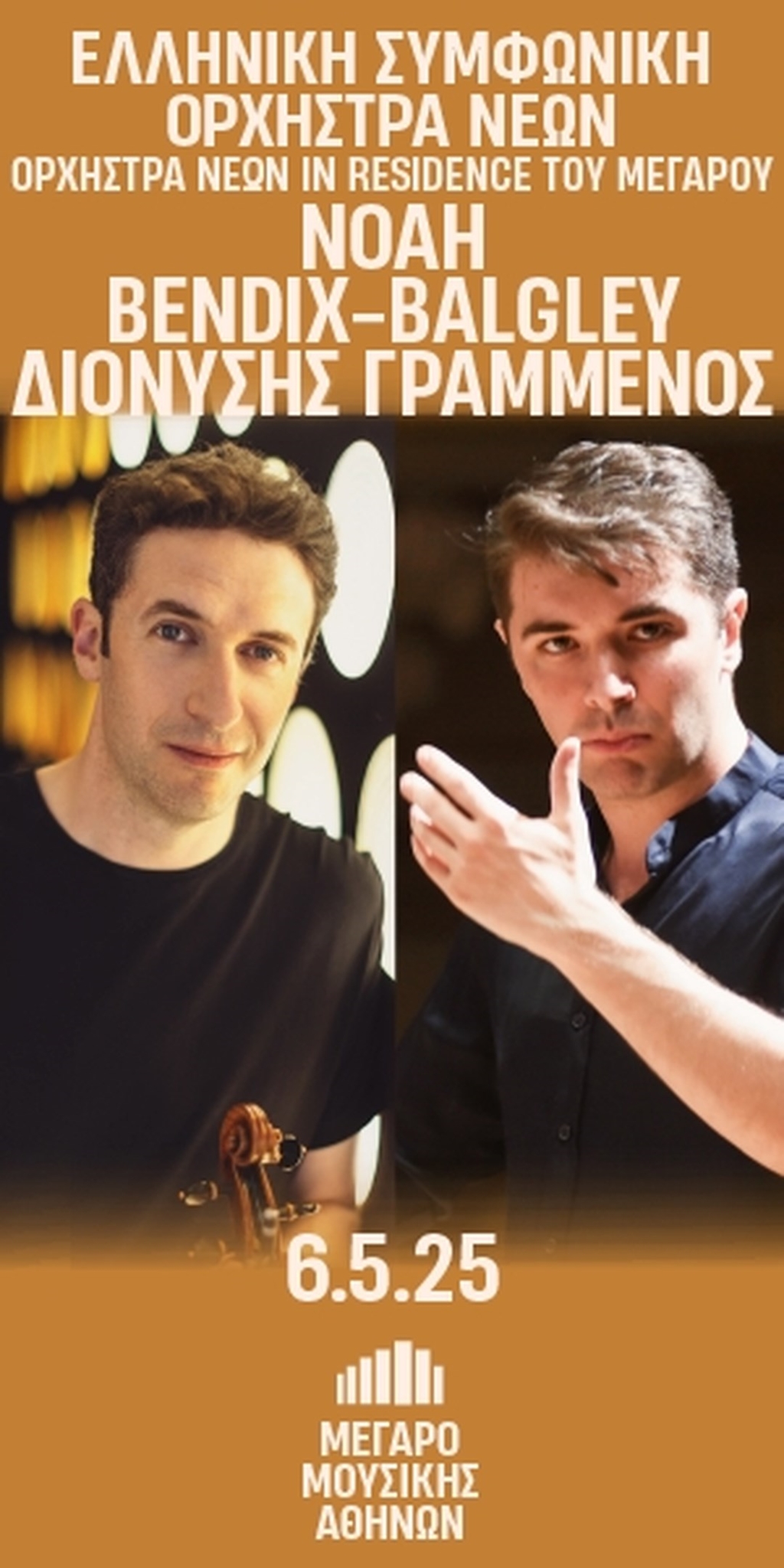 Πληροφορίες για τη συναυλία, στην ιστοσελίδα του Μεγάρου: https://www.megaron.gr/event/elliniki-symfonii-orchistra-neon-noah-bendix-balgley-dionysis-grammenos/