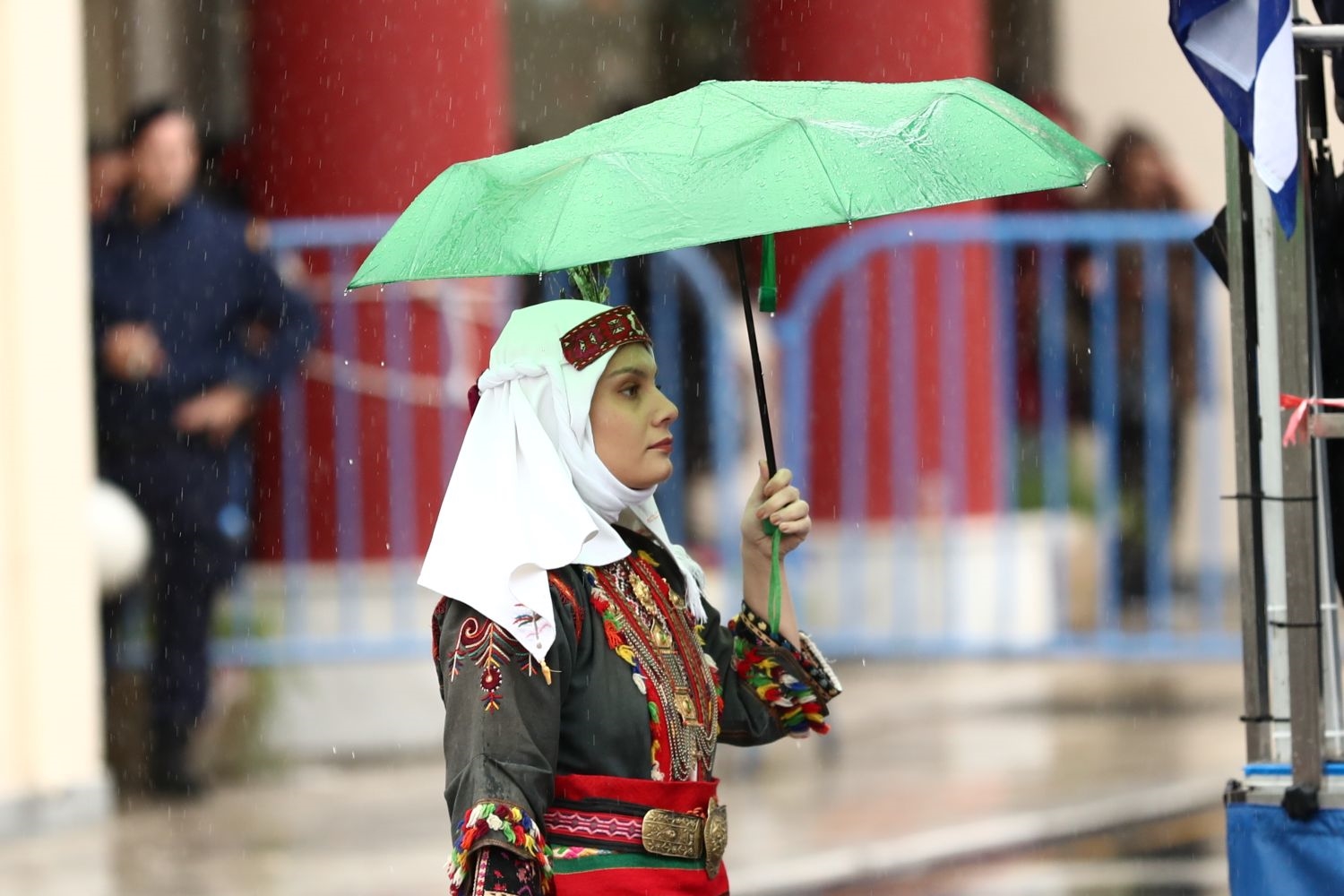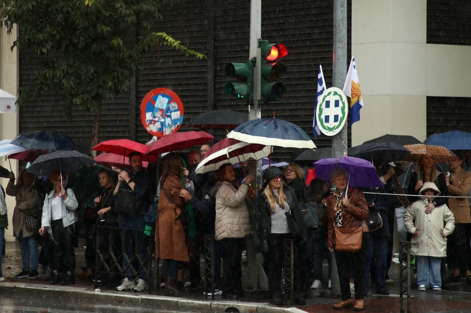 Θεσσαλονίκη: Υπό καταρρακτώδη βροχή παρέλασαν οι μαθητές κερδίζοντας το θερμό χειροκρότημα του κόσμου