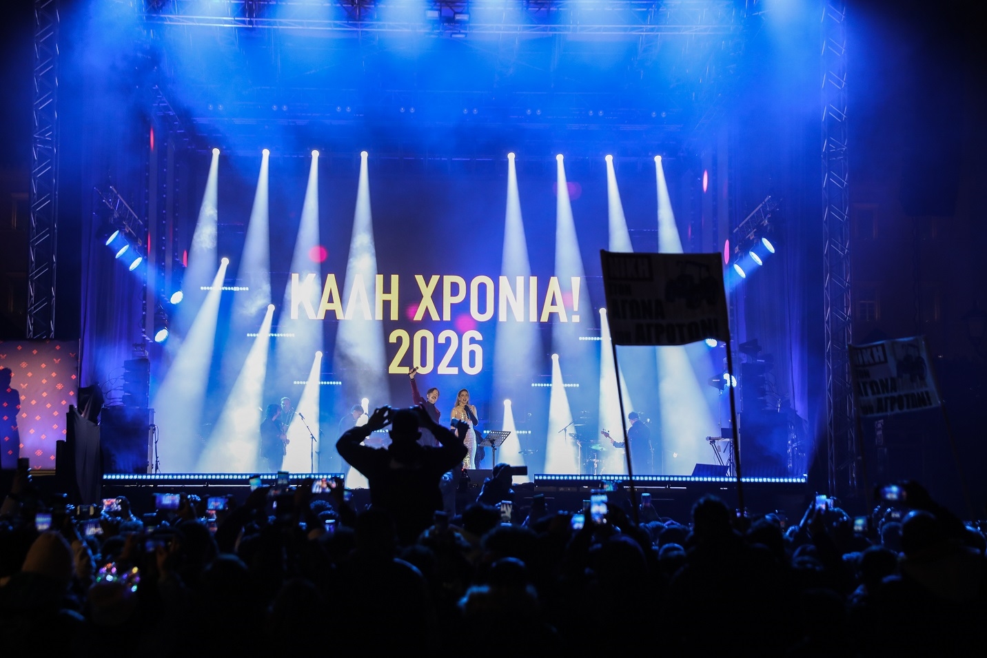 Όπως κάθε χρόνο έτσι και φέτος, η πλατεία Συντάγματος έγινε το επίκεντρο του εορτασμού της Αθήνας για την υποδοχή του νέου έτους. Πλήθος κόσμου αψήφησε το κρύο και μαζεύτηκε από νωρίς για να απολαύσει το μουσικό θέαμα που ετοίμασαν ο Κώστας Μαραβέγιας και η Ρένα Μόρφη. Την εκδήλωση είχε ανοίξει μουσικά η Φιλαρμονική Ορχήστρα του δήμου Αθηναίων.