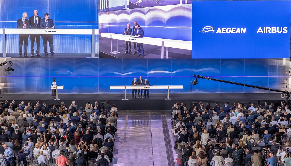 Στην υπογραφή της συμφωνίας, ύψους 5 δισ. δολ. (σε τιμες καταλόγου) με την Airbus για την προμήθεια έως και 42 αεροσκαφών της οικογένειας A320neo προχώρησε σήμερα η Aegean, σε ειδική τελετή στην τεχνική της βάση στο αεροδρόμιο Ελ. Βενιζέλος.