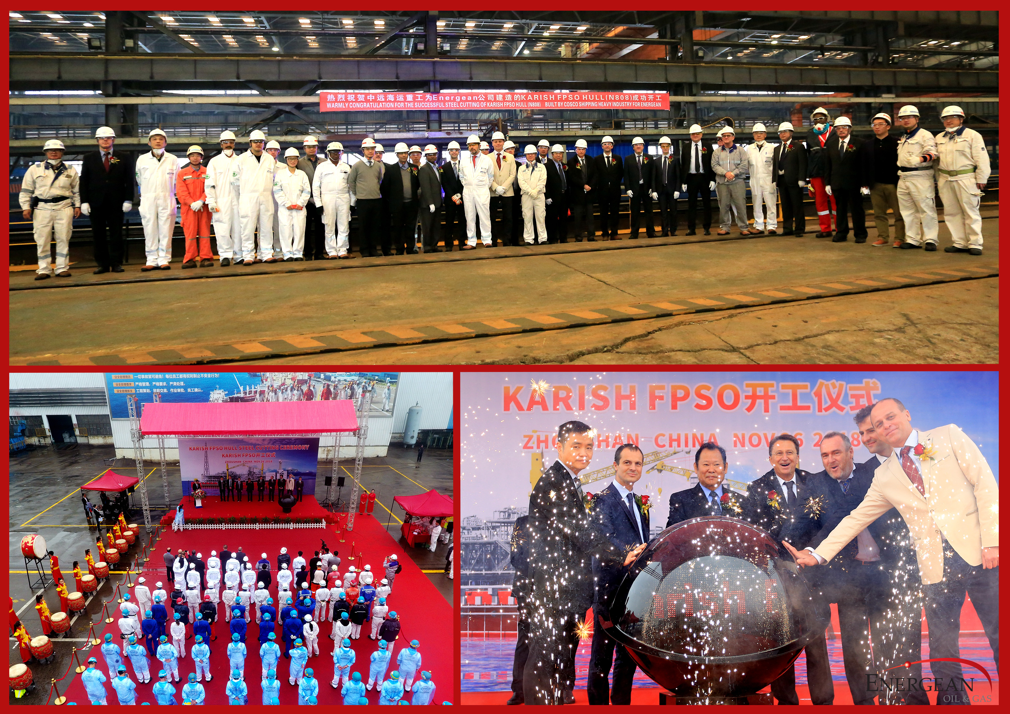 Η κοπή του πρώτου χάλυβα πραγματοποιήθηκε στα ναυπηγεία της COSCO στο Ζουσάν της Κίνας, την Δευτέρα 26 Νοεμβρίου στο πλαίσιο ειδικής τελετής, στην οποία παραβρέθηκαν κορυφαία στελέχη της Energean και των εταιρειών που συνεργάζονται στο project. Αποτελεί, δε, ένα σημαντικό ορόσημο στην πορεία προς την εγκατάσταση του FPSO στο Ισραήλ στα τέλη του 2020 και την έναρξη παραγωγής στη διάρκεια του πρώτου τριμήνου του 2021.