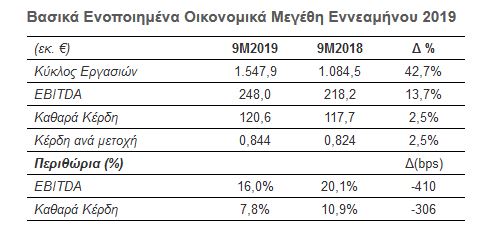 · O Κύκλος εργασιών ανήλθε σε €1.547,9 εκατ., έναντι €1.084,5 εκατ. την αντίστοιχη περίοδο του 2018, σημειώνοντας αύξηση 42,7%.