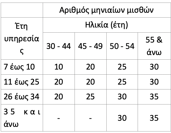 Το εν λόγω Προσωπικό που έχει συμπληρώσει το 30ο έτος της ηλικίας του και 7ετή υπηρεσία στην Τράπεζα, θα λάβει 35 μηνιαίους μισθούς.