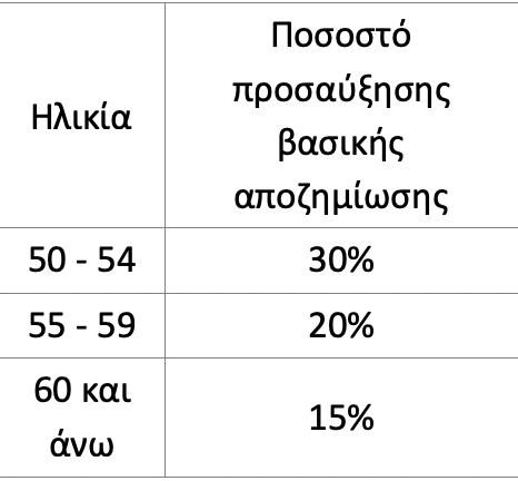 Δίνεται προσαύξηση επί της βασικής αποζημίωσης βάσει της ηλικίας του υπαλλήλου, ως εξής: