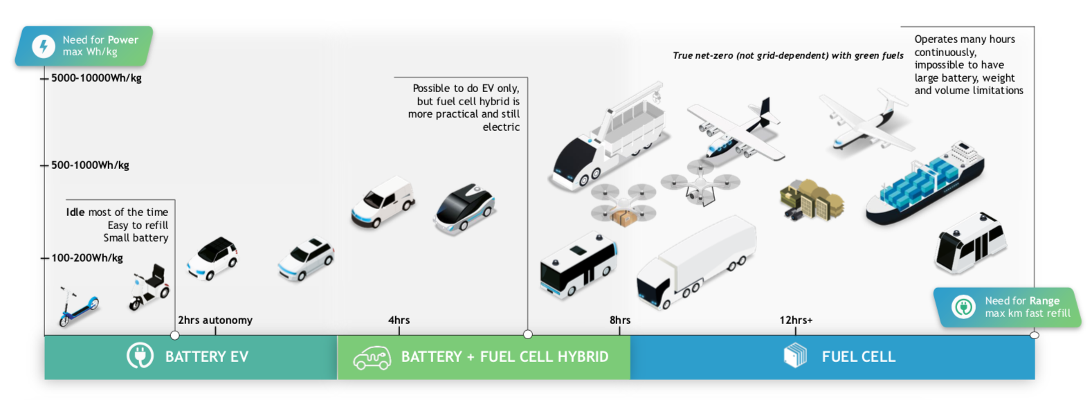 Οι κυψέλες καυσίμου χρησιμοποιούν υδρογόνο, φυσικό αέριο ή άλλες μορφές καθαρών υγρών καυσίμων (efuels) για την παραγωγή "καθαρής" ενέργειας. Η συγκεκριμένη τεχνολογία έχει πολλαπλές χρήσεις στην αυτοκινητοβιομηχανία (ειδικά σε επαγγελματικά οχήματα και φορτηγά μεγάλου κυβισμού), στην αεροναυπηγική (drones) και στην παραγωγή ενέργειας εκτός δικτύου (off-grid).