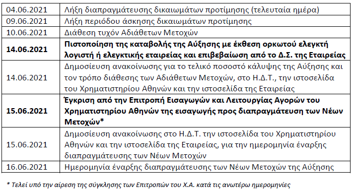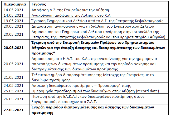 Το αναμενόμενο χρονοδιάγραμμα ολοκλήρωσης της Αύξησης είναι το εξής: