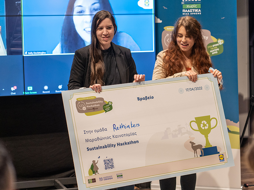To Sustainability Hackathon συγκέντρωσε το ενδιαφέρον ομάδων και startups από όλη την Ελλάδα που σε 48 ώρες ανέπτυξαν τις εφαρμογές και τις προτάσεις τους και την Κυριακή 17 Απριλίου τις παρουσίασαν στην επιτροπή αξιολόγησης. Από τις συνολικά 30 ομάδες, 5 απέσπασαν χρηματικά βραβεία από το Κοινωφελές Ίδρυμα Αθανάσιος Κ. Λασκαρίδης, δωροεπιταγές από τη Lidl Ελλάς και εξασφάλισαν την είσοδό τους στο 5μηνο πρόγραμμα επιχειρηματικής επιτάχυνσης Sustainability Innovation Lab, ενώ ειδικό έπαινο απέσπασε η 6η ομάδα.