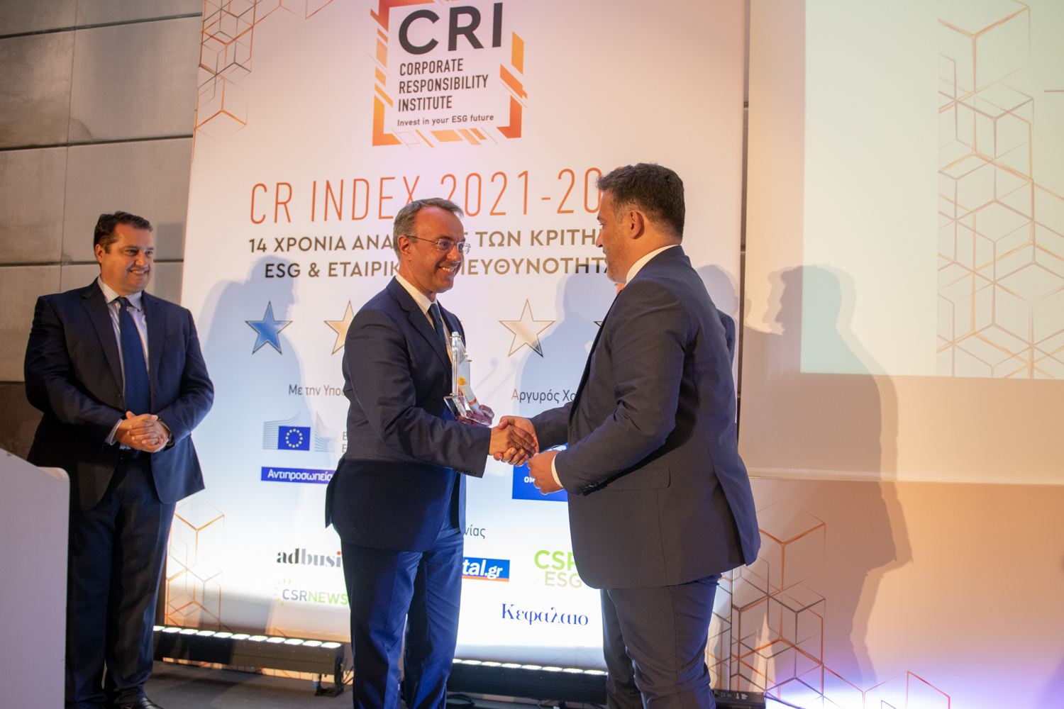 Το Ινστιτούτο Εταιρικής Ευθύνης (Corporate Responsibility Institute) ανέδειξε και επιβράβευσε, για δέκατη τέταρτη συνεχή χρονιά, τις εταιρείες που κάνουν τη διαφορά στο υπεύθυνο επιχειρείν, εφαρμόζοντας τα κριτήρια ESG που σχετίζονται με τις επιδόσεις τους σε περιβαλλοντικά, κοινωνικά ζητήματα και σε ζητήματα εταιρικής διακυβέρνησης. Το Ινστιτούτο Εταιρικής Ευθύνης, μετά από 14 χρόνια παρουσίας στην Ελλάδα, έχει πλέον υποστηρίξει περισσότερες από 80 ελληνικές και πολυεθνικές επιχειρήσεις από 12 διαφορετικούς κλάδους, που αντιπροσωπεύουν το 20% του ΑΕΠ της χώρα μας, να ενσωματώσουν αποτελεσματικά και μετρήσιμα υπεύθυνες πρακτικές στη στρατηγική τους.