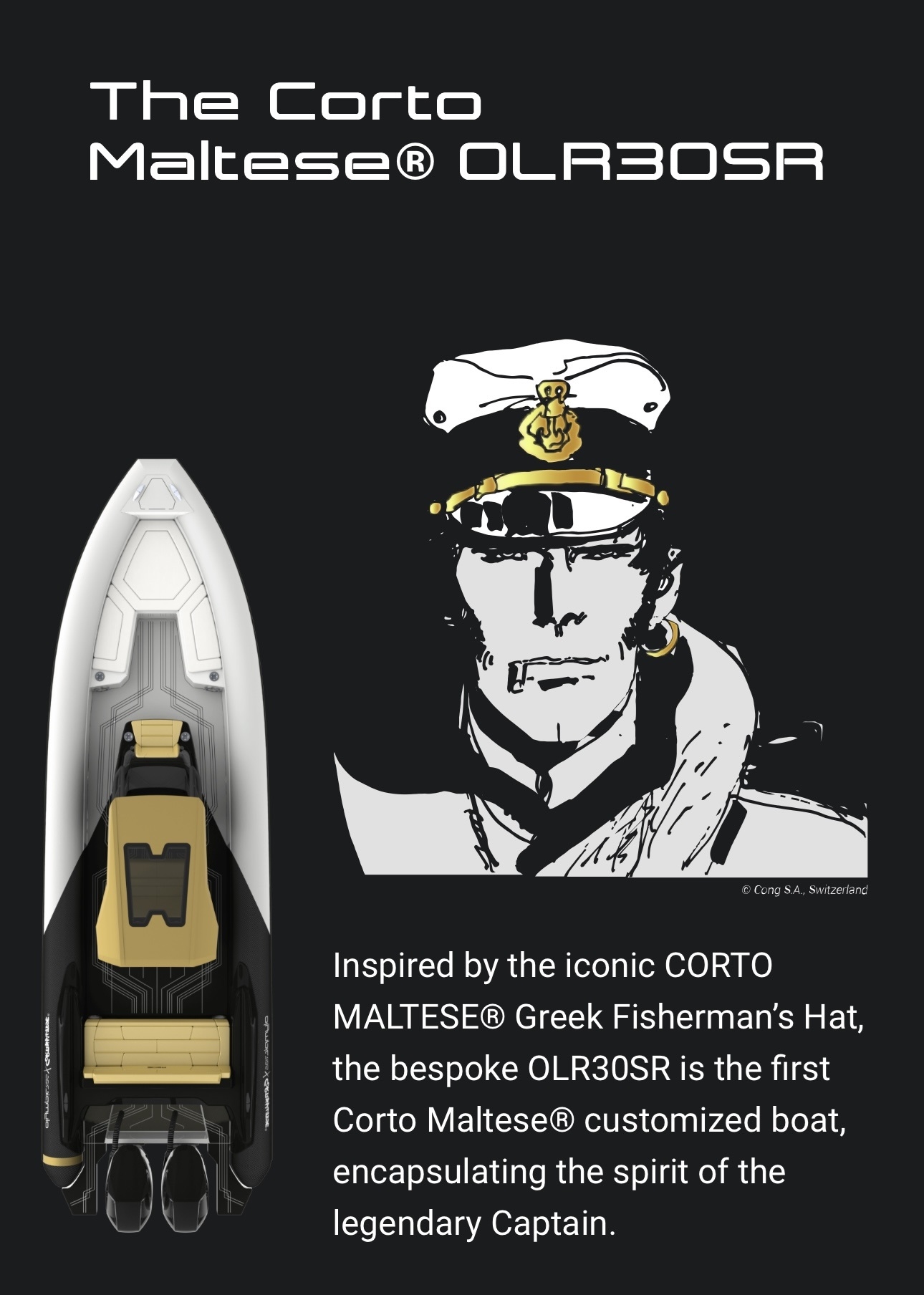 Ο Maurizio Distefano, πρόεδρος της Maurizio Distefano Licensing πρόσθεσε: "Η ειδική έκδοση του OLR30SR είναι ένα εξαιρετικό παράδειγμα του πώς ένα δημιουργικό όραμα μπορεί να μετατραπεί σε τελικό προϊόν. Είναι ένας φόρος τιμής στον Corto Maltese® κι αναδεικνύει έμπρακτα το καινοτόμο πνεύμα που διακρίνει την Olympic Ribs.”