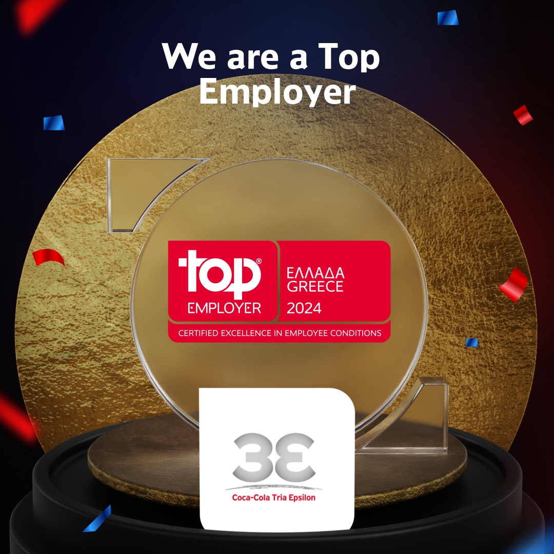 Η Coca-Cola Τρία Έψιλον αναδείχθηκε για 5η συνεχή χρονιά ως "Κορυφαίος Εργοδότης" στη χώρα, σύμφωνα με την αξιολόγηση του ανεξάρτητου θεσμού "Top Employers Institute". Η διάκριση αυτή επιβεβαιώνει τη δέσμευση της εταιρείας για τη διασφάλιση ενός υγιούς, ασφαλούς και συμπεριληπτικού περιβάλλοντος εργασίας, όπου όλοι οι εργαζόμενοι έχουν πρόσβαση σε ίσες ευκαιρίες εξέλιξης και συναρπαστικές εμπειρίες, χωρίς διακρίσεις και αποκλεισμούς.