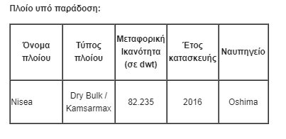 Σχετικά με τις πρόσφατα ανακοινωμένες αγοραπωλησίες, η κερδοφόρα πώληση του M/V Oasea, τύπου Kamsarmax κατασκευής του 2010 στην Κίνα, ολοκληρώθηκε επιτυχώς με την παράδοση του πλοίου στους νέους του ιδιοκτήτες προς τα τέλη του δεύτερου τριμήνου του 2024. Το M/V Oasea θα αντικατασταθεί από ένα ιαπωνικό Kamsarmax κατασκευής του 2016, που θα μετονομαστεί σε "Nisea". Η παράδοση του πλοίου αναμένεται μέχρι το τέλος του Οκτωβρίου και θα αποκτηθεί στη βάση μιας συμφωνίας bareboat-in με δικαίωμα αγοράς σε προνομιακή τιμή. Μετά την παραλαβή του M/V Nisea, το μέγεθος του στόλου μας θα παραμείνει αμετάβλητο στα 8 πλοία, συνεχίζοντας να εξετάζουμε αγορές που ικανοποιούν τα ποιοτικά και εμπορικά κριτήριά μας ενώ παράλληλα δύνανται να παρέχουν υψηλές αποδόσεις κεφαλαίου.