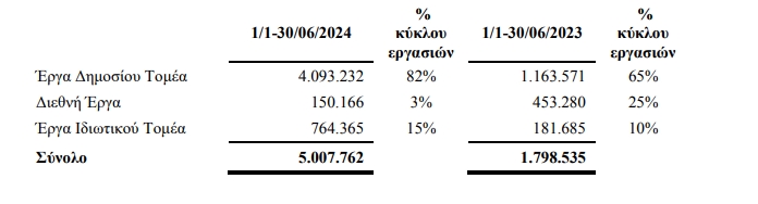 Αναφορικά με τη διάρθρωση των πωλήσεων, η Εταιρεία κατά το Α’ εξάμηνο του 2024, ενίσχυσε την παρουσία της και των αριθμό των νέων έργων, κυρίως στην ελληνική αγορά, όπως αποτυπώνεται ακολούθως: