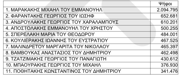 Εκλέγονται στο νέο Διοικητικό Συμβούλιο οι έντεκα πρώτοι κατά σειρά προτίμησης υποψήφιοι.