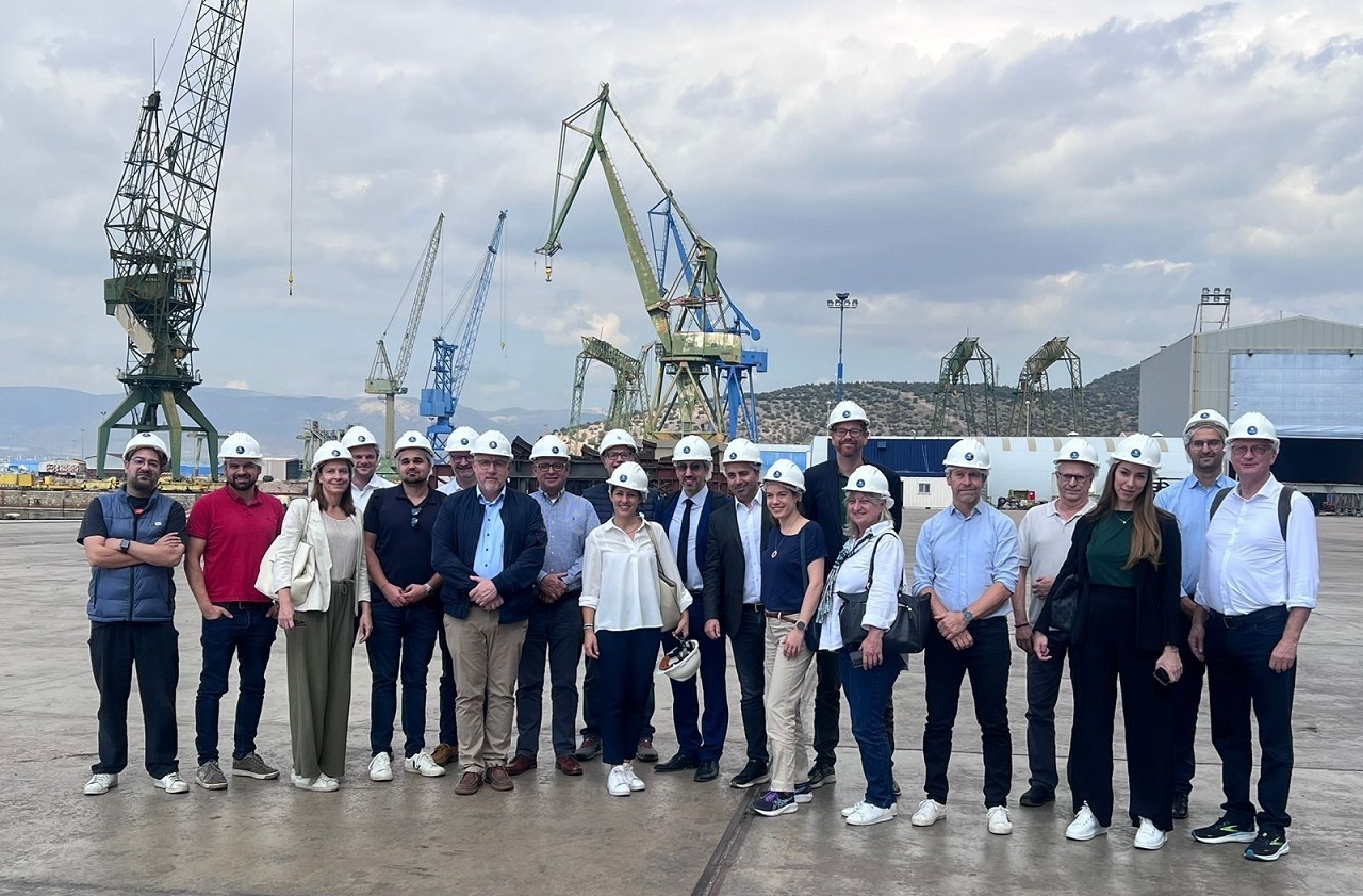 Ειδικότερα, την Τετάρτη 15 Οκτωβρίου, η επιχειρηματική αποστολή επισκέφθηκε τα Ναυπηγεία Σκαραμαγκά, όπου τα στελέχη ενημερώθηκαν από τον Διευθύνοντα Σύμβουλο κ. Μιλτιάδη Βαρβιτσιώτη για την πορεία και τις προοπτικές των ναυπηγείων, καθώς και τον ρόλο των στρατηγικών συνεργασιών στην ενίσχυση του κλάδου.