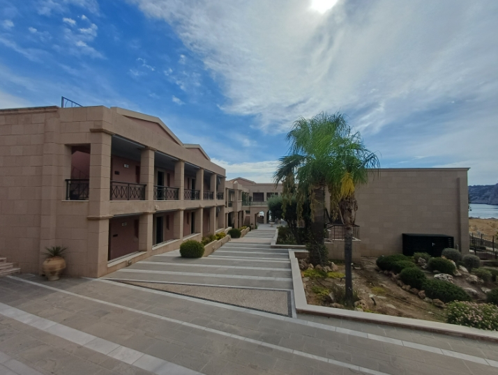 Η θέση του ακινήτου κρίνεται ιδιαιτέρως πλεονεκτική καθώς βρίσκεται σε ένα από τα πιο τουριστικά μέρη της Ρόδου ενώ διαθέτει και τμήμα ιδιωτικής παραλίας μήκους περί τα 120 μ..