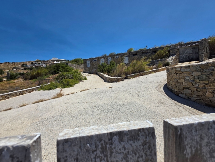 Β) Αγροτεμάχιο 5.422 τ.μ. στη θέση Φανάρι Μυκόνου, με λιθοδομές, φυτεύσεις, πέργκολες και δρόμο από μπετόν. Εντός του ακινήτου υπάρχουν κατοικίες, φυλάκια και λοιπά κτίσματα συνολικής επιφάνειας 243,73 τ.μ., καθώς και στέρνα-πισίνα 54,10 τ.μ. Τιμή εκκίνησης: 400.000 ευρώ.