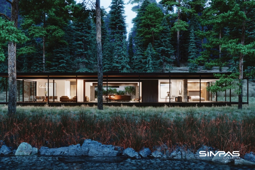 Το πρώτο μεγάλο project που έδωσε διεθνή προβολή στην εταιρεία ήταν ένα χειμερινό θέρετρο στο Yellowstone της Μοντάνα, όπου όπου, σύμφωνα με διαθέσιμες πληροφορίες, διαθέτει ιδιοκτησία και η Jennifer Lopez. Το συγκεκριμένο θέρετρο δεν απευθύνεται σε οποιονδήποτε: η τιμή εισόδου ξεκινά από αγορά ακινήτου 10 έως 25 εκατ. δολαρίων, ενώ η ετήσια συνδρομή ανέρχεται στα 500.000 δολάρια. Η Simpas ανέλαβε το σύνολο του έργου, αξίας περίπου 3,5 εκατ. δολαρίων, παραδίδοντας 30 κοντέινερ με premium αλουμινένια κουφώματα.