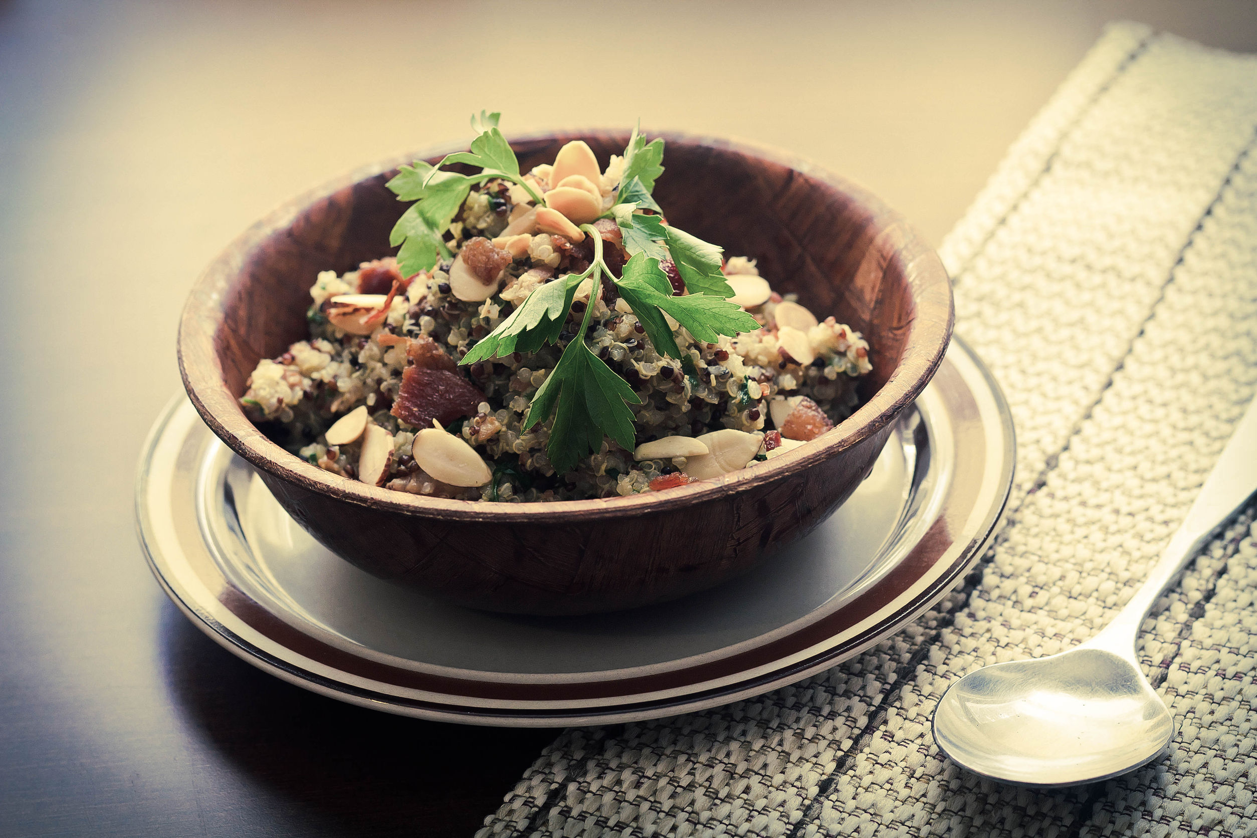 Οι διαιτολόγοι προτείνουν να γεμίσουμε το μισό πιάτο με σαλάτα. Με τη συγκεκριμένη θα το κάνουμε με ευχαρίστηση! Η σαλάτα αυτή έχει ως βάση το άγριο ρύζι και την κινόα, που σημαίνει ότι περιέχει επαρκείς ποσότητες υδατανθράκων και πρωτεΐνης που θα συμβάλουν στον κορεσμό.