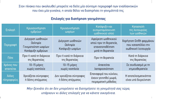 • Να μην γνωρίζει τις επιλογές που έχει για να διατηρήσει τη γονιμότητά της.