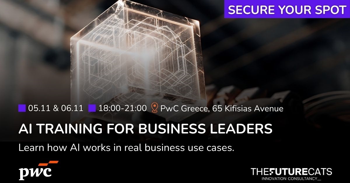 Αν είσαι CFO, διευθυντής ή υψηλόβαθμο στέλεχος που θέλει να μάθει πώς να αξιοποιεί το ΑΙ για να πετύχει τα καλύτερα αποτελέσματα, το "AI Executive for Business in Action” training, από την PwC’s Academy & την TheFutureCats είναι ιδανικό για εσένα. Σε δύο ημέρες, θα μάθεις πώς να κάνεις σωστά prompting για να αυξήσεις την αξία του ΑΙ στην επιχείρησή σου και να πετύχεις σημαντικά αποτελέσματα, ώστε να μετατρέψεις τη γνώση σου σε μετρήσιμα κέρδη.