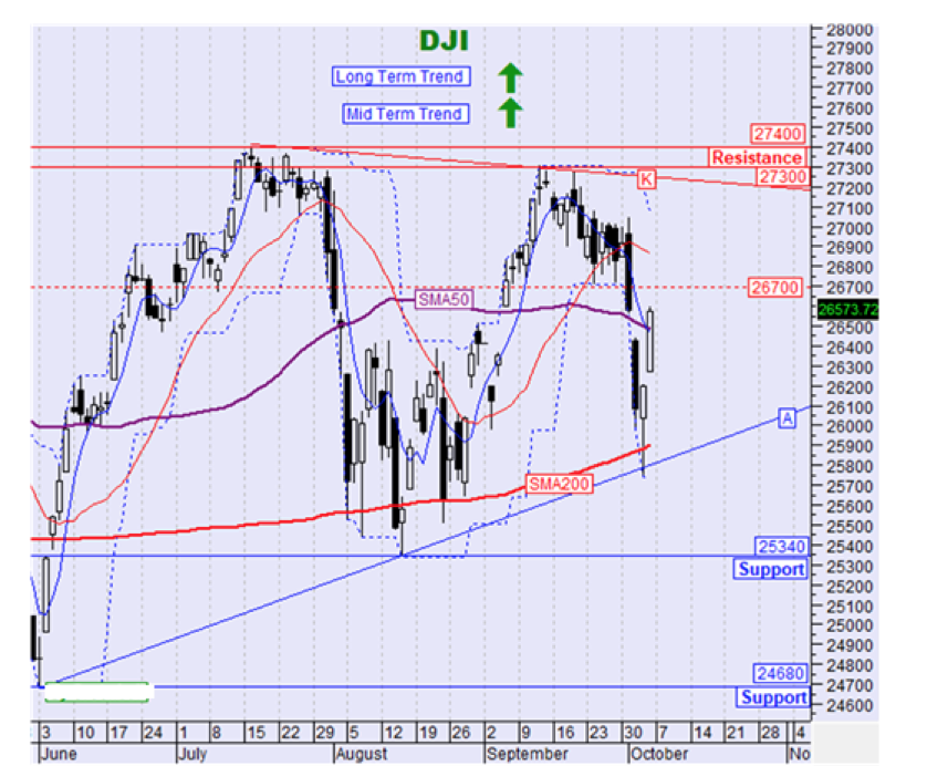 Ο DOW αφού απέτυχε να φτάσει σε νέο υψηλό διόρθωσε απότομα χωρίς όμως να "χαλάσει" την τεχνική του εικόνα. Ακούμπησε απλά το 200άρη του και την ανερχόμενη Α και έφυγε γρήγορα ψηλότερα. Βρίσκεται ήδη σε ανοδική αντίδραση και θα δοκιμάσει αν μπορεί να φτάσει ξανά σε επίπεδα τιμών των περασμένων δύο εβδομάδων (>27000)