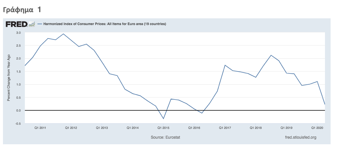 Οι διαρθρωτικές αλλαγές στην οικονομία πρόσφατα ώθησαν την Fed να υιοθετήσει μια νέα στρατηγική νομισματικής πολιτικής, προκειμένου να μην παγιώσει τις προσδοκίες για τον πληθωρισμό προς τα κάτω. Η Ευρωπαϊκή Κεντρική Τράπεζα, όμως από την άλλη πλευρά, έχει αποτύχει στον στόχο της για τον πληθωρισμό – ποσοστό κοντά στο, αλλά κάτω από το 2 τοις εκατό – επί σειρά συνεχόμενων ετών (γράφημα 1). Η κατάσταση στην Ευρωζώνη μοιάζει ολοένα και περισσότερο με εκείνη της Ιαπωνίας την τελευταία δεκαπενταετία, με μια ξέφρενη αλλά ανεπιτυχή προσπάθεια της κεντρικής τράπεζας να επαναφέρει τον πληθωρισμό στον επιθυμητό στόχο.
