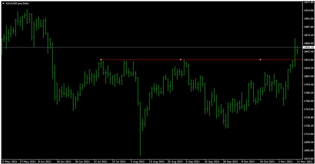 Στα υψηλά πενταμήνου βρίσκεται η τιμή του πολύτιμου μετάλλου, με τους τεχνικούς αναλυτές να θέτουν το επίπεδο των 1.840-1.850 δολαρίων ως "αντίσταση” πάνω από την οποία η Αγορά θα πρέπει να παραμείνει προκειμένου να επιβεβαιώσει την ανοδική της δυναμική (γράφημα1).