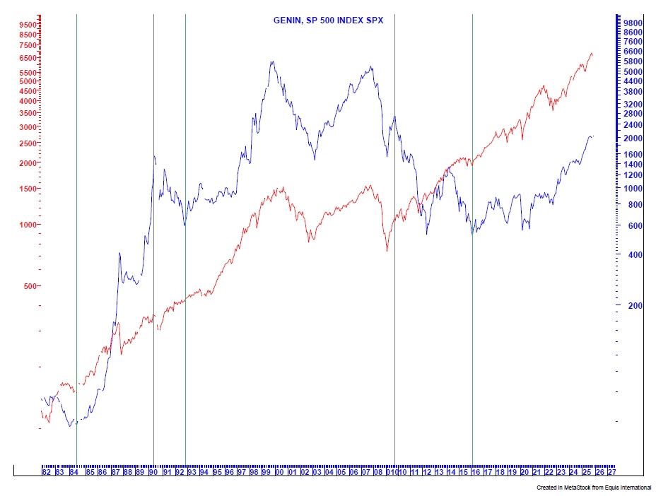 Στον νέο ανοδικό κύκλο των αγορών (bull market) ο οποίος είναι σε εξέλιξη από τον Οκτώβριο του 2022 μέχρι τα τέλη Νοεμβρίου 2025, η υψηλή συσχέτιση μεταξύ του ελληνικού γενικού δείκτη και S&P 500 είναι έντονα παρούσα. Η απόδοση του ελληνικού δείκτη σ’ αυτό το διάστημα ανάγεται στο 167% ενώ αυτή του S&P 500 ανέρχεται στο 87%.Ο ελληνικός δείκτης έχει σαφέστατα υπεραποδώσει χωρίς να λαμβάνεται υπόψιν και η ανατίμηση του Ευρώ έναντι του Δολαρίου (18,3%).