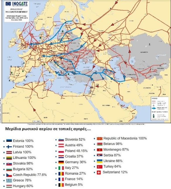 Ενδεικτικά η Γερμανία εξαρτάται κατά 36% από το Ρωσικό φυσικό αέριο, η Πολωνία κατά 48%, η Γαλλία κατά 14%, η Τουρκία κατά 64%, η Σερβία κατά 87% κλπ.