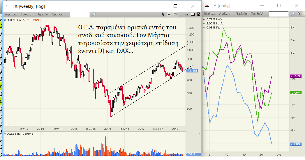 Η ελληνική αγορά τον Μάρτιο σημείωσε πολλαπλάσιες απώλειες σε σχέση με τους βασικούς διεθνούς δείκτες αναφοράς. Έναντι απωλειών 1 και 2% του DAX και του Dow Jones ο ΓΔ έχασε πάνω από 6%.
