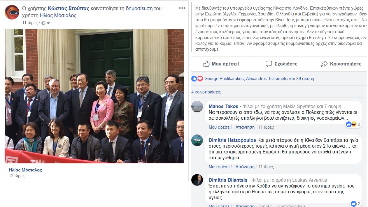 Η Κίνα λοιπόν έχει επιλέξει τον κ. Μόσιαλο σαν σύμβουλο για την προσπάθεια που κάνει να δημιουργήσει ένα σύγχρονο σύστημα δημόσιας υγείας. Η Ελλάδα προφανώς δεν έχει ανάγκη τα φώτα του...