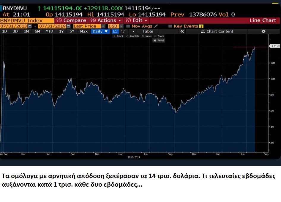 Φοβάμαι πως τα μετρητά έχουν "δηλητηριαστεί" από τις παράδοξες νομισματικές πολιτικές και τα ομόλογα με αρνητική απόδοση είναι ασφαλή καταφύγια μόνο για "κατσαρίδες". Στο επόμενο κραχ λογικά η μπάλα θα πρέπει να πάρει τα μετρητά και τα ομόλογα  λόγω   κατάχρησης του προνομίου εκτύπωσης...