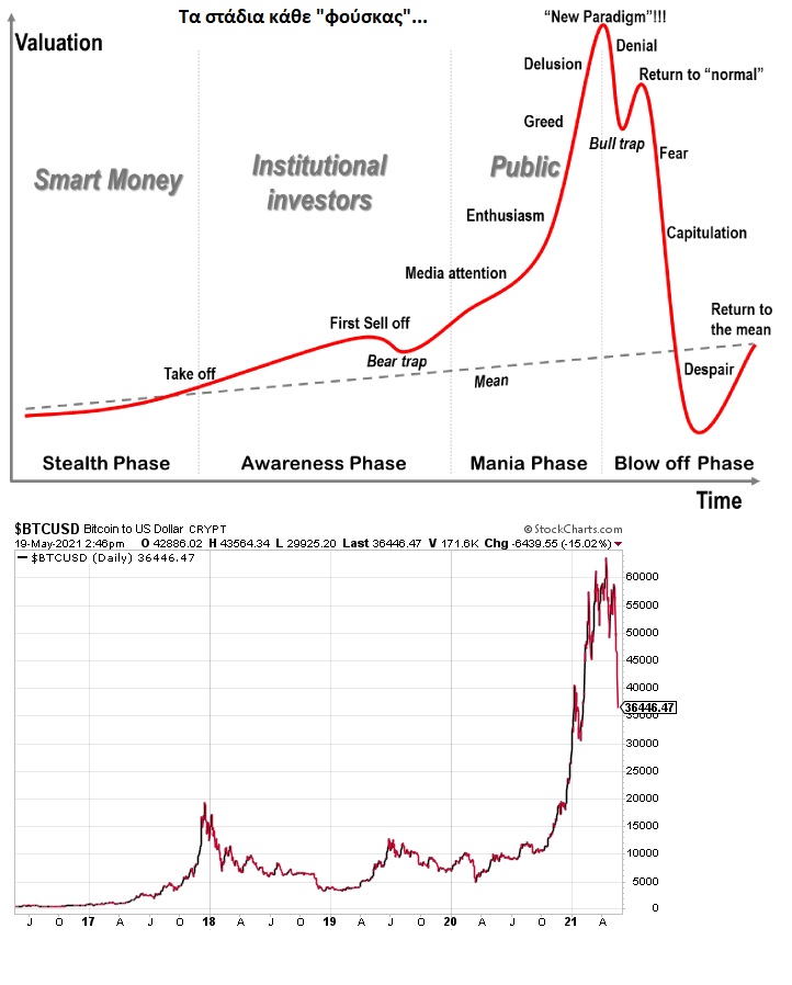 Με βάση τη διαγραμματική εικόνα η αντίδραση θα μπορούσε να ξεπεράσει και τις 40.000 δολ. αλλά αυτό δεν εγγυάται πως η πτώση δεν θα έχει συνέχεια.