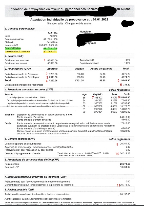 7. Εάν θεωρητικά μεχρι τα 65 μου, με κάποιες αυξήσεις + τόκους στον 2ο πυλώνα, έχω συγκεντρώσει 348.302 φράγκα, τον χρόνο θα παίρνω σύνταξη 18,808, ήτοι 1600φρ το μήνα. (8)