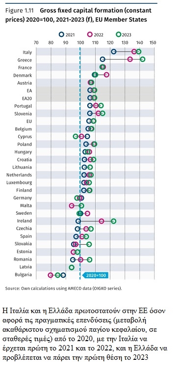 Ιδού λοιπόν τι συμβαίνει με τις επενδύσεις. Ο ακαθάριστος σχηματισμός κεφαλαίου το 2021 έφτασε τα 32,9 δισ. ευρώ από 22,8 δισ. ευρώ το 2019, 21,3 το 2015 και 43,5 δισ. το 2009 την τελευταία χρονιά πριν τη χρεοκοπία.