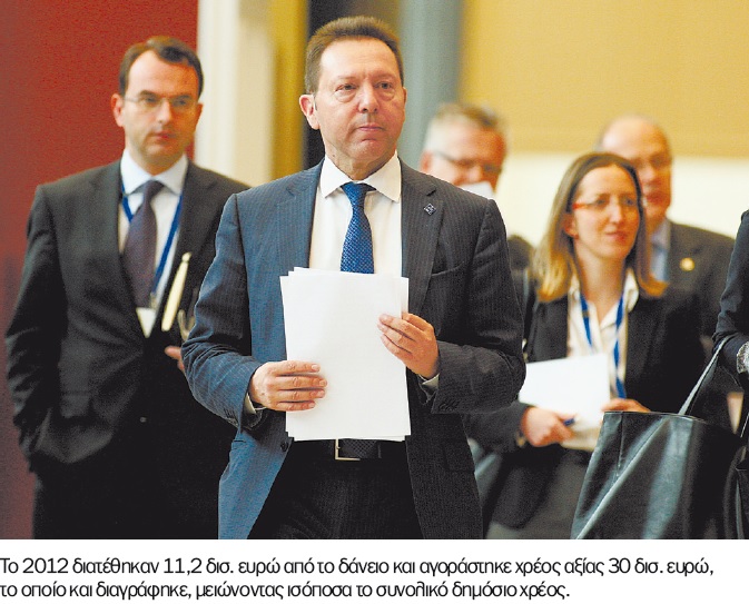 Συγκεκριμένα, στο τέλος της ταραγμένης οικονομικά και πολιτικά χρονιάς του 2012, τον μήνα Δεκέμβριο, υλοποιήθηκε μία απόφαση του Eurogroup που είχε ληφθεί κατ' απαίτηση του ΔΝΤ να χρησιμοποιηθούν περί τα 10-11 δισ. ευρώ από τα διαθέσιμα του δανείου για να αγοραστεί χρέος από τη δευτερογενή αγορά και να ακυρωθεί (να διαγραφεί). Πράγματι διατέθηκαν τότε 11,2 δισ. ευρώ από το δάνειο και αγοράστηκε χρέος αξίας 30 δισ. ευρώ το οποίο και διαγράφηκε μειώνοντας ισόποσα το συνολικό δημόσιο χρέος.