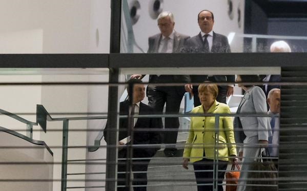 Ολοκληρώθηκε στο Βερολίνο η συνάντηση μεταξύ της Angela Merkel, του Francois Hollande, του Jean Claude Juncker, του Mario Draghi και της Christine Lagarde. Σύμφωνα με τον εκπρόσωπο της Καγκελαρίας Steffen Seibert, οι πέντε αξιωματούχοι συζήτησαν την κατάσταση των διαπραγματεύσεων μεταξύ της Ελλάδας και των Θεσμών και συμφώνησαν ότι είναι αναγκαία η εντατική προσπάθεια για την επίτευξη συμφωνίας, ενώ αποφάσισαν ότι θα παραμείνουν σε στενή επαφή με την ελληνική κυβέρνηση, όπως αναφέρει σε τηλεγράφημά του το ΑΠΕ - ΜΠΕ.