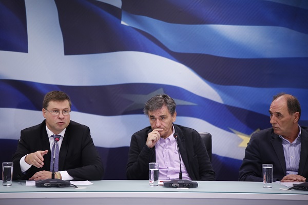 Τόσο ο κ Τσακαλώτος όσο και ο κ. Σταθάκης ευχαρίστησαν τον κ. Ντομπρόβσκις για τη βοήθεια που έχει δώσει στην ελληνική κυβέρνηση.