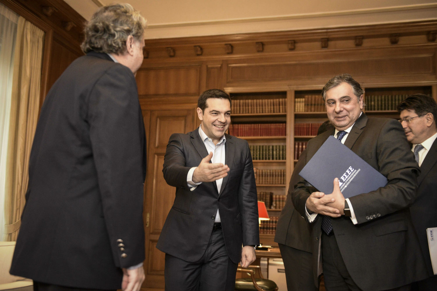 Σε εξέλιξη βρίσκεται από τις 11 το πρωϊ στο Μέγαρο Μαξίμου η συνάντηση των Αλέξη Τσίπρα και Γιώργου Κατρούγκαλου με τους εκπροσώπους των μεγάλων εργοδοτικών οργανώσεων (ΣΕΒ, ΕΣΕΕ, ΓΣΕΒΕΕ, ΣΕΤΕ).